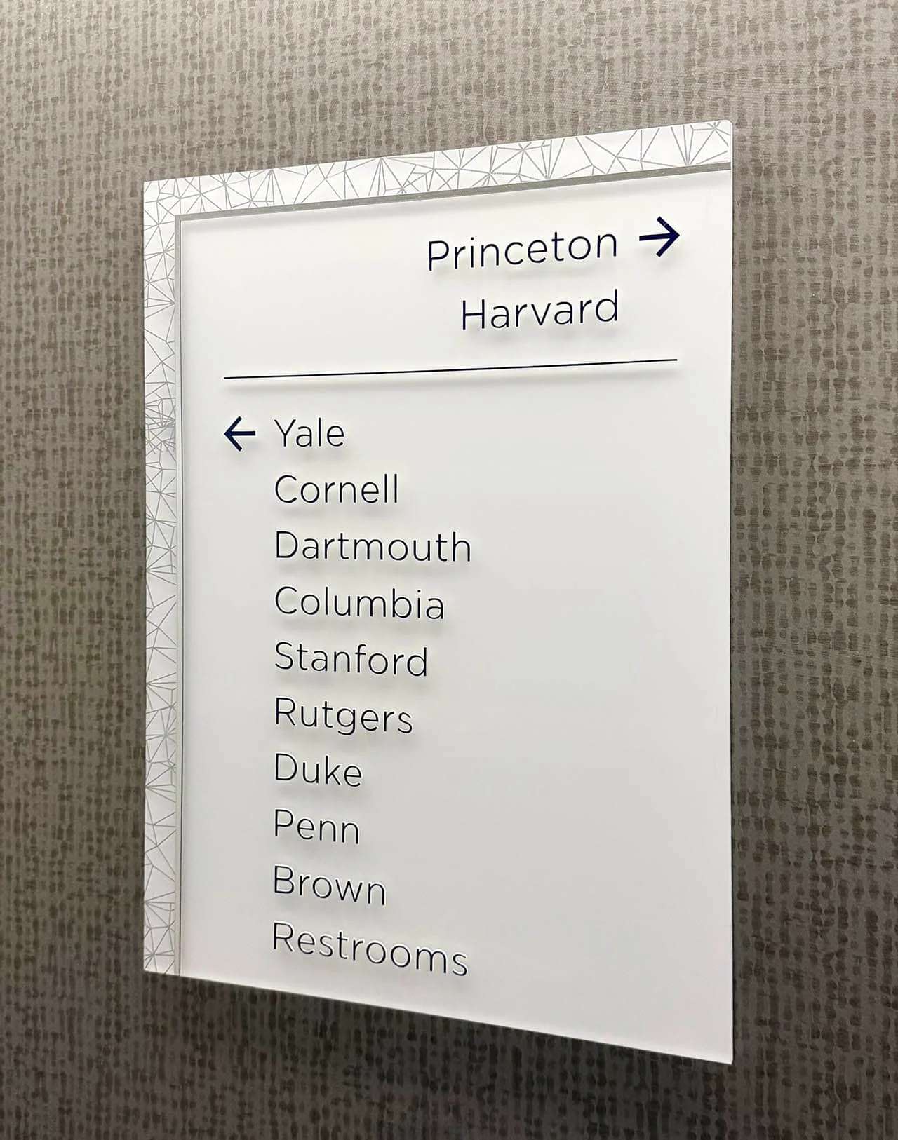 Each project showcases our expertise in custom signage, wayfinding systems and beyond. From concept to completion, we collaborate with architects, designers, and builders to create environments that inspire and endure.